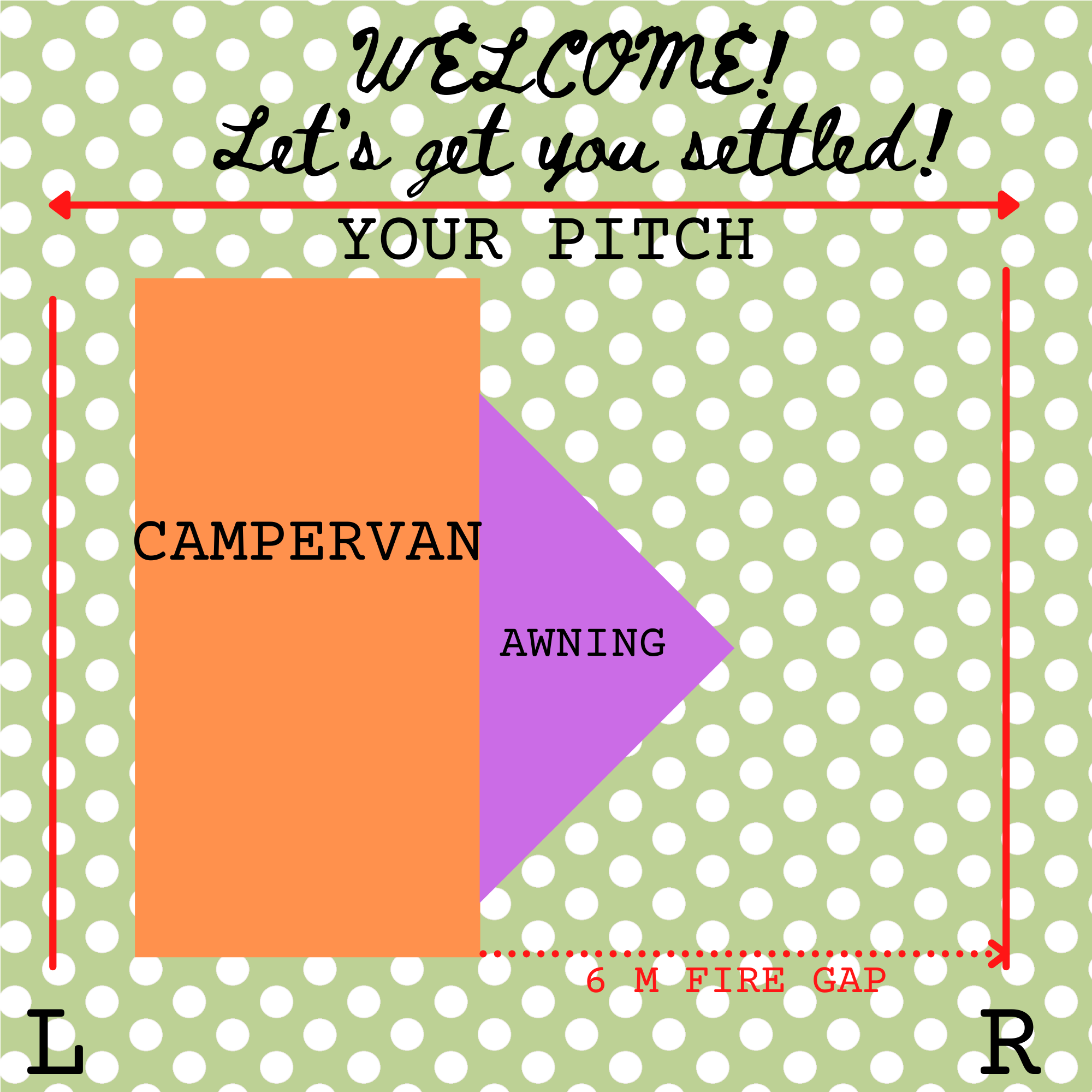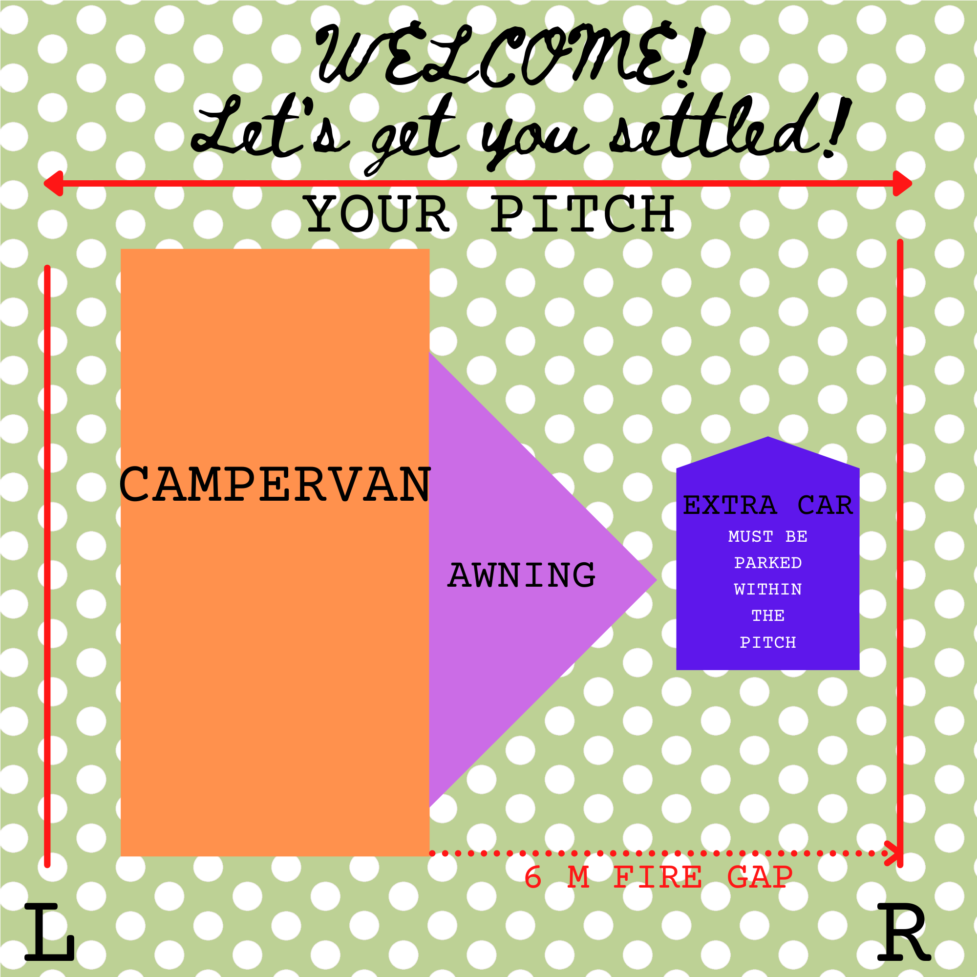 We request due to fire regulation laws, that you pitch to the left of the pitch as shown in the diagram at the bottom of this page.