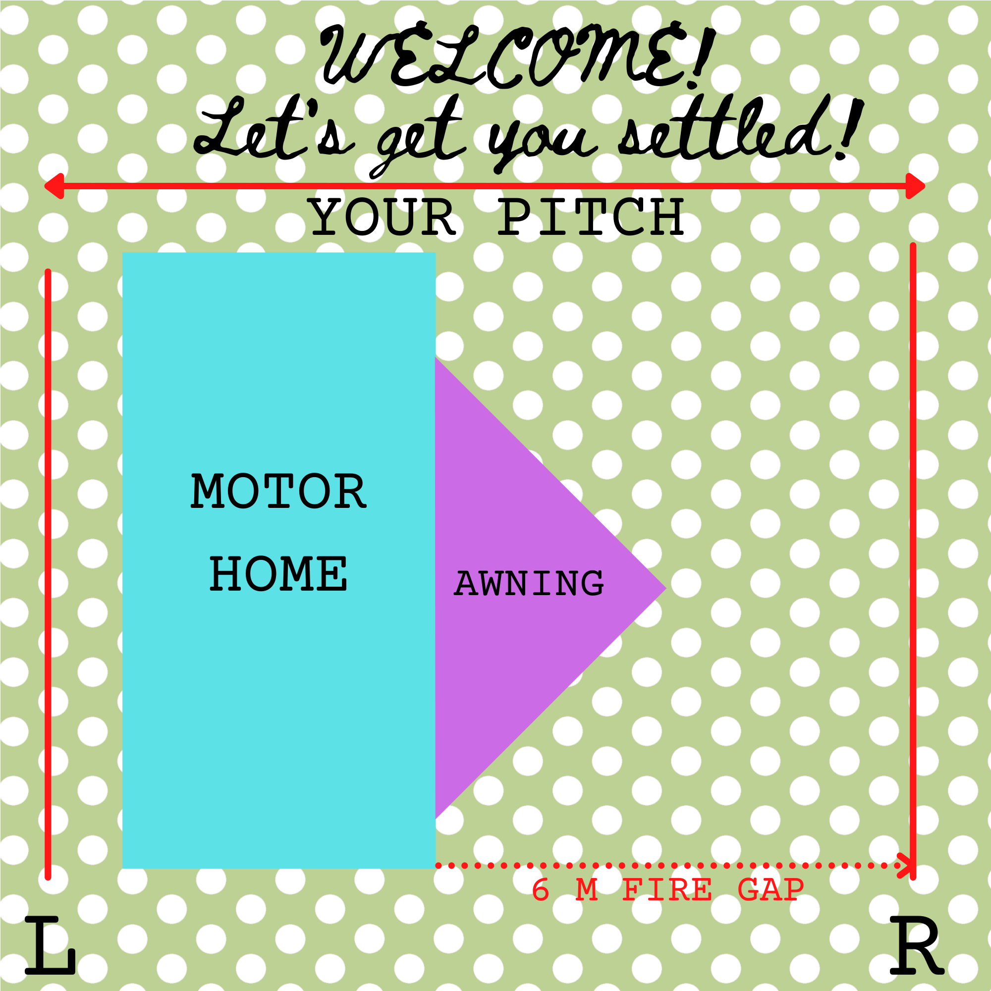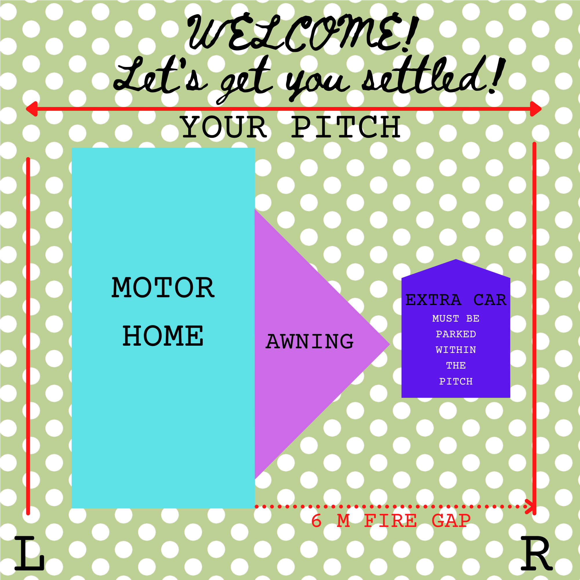 We request due to fire regulation laws, that you pitch to the left of the pitch as shown in the diagram at the bottom of this page.